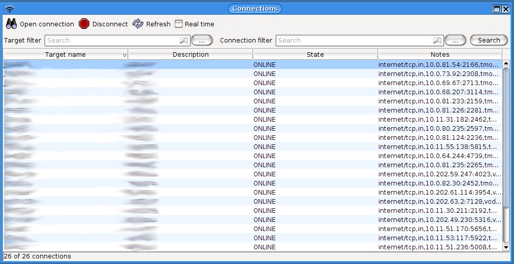 You can check the connection status of the targets. You can open multiple windows and your search term will be displayed in the header.