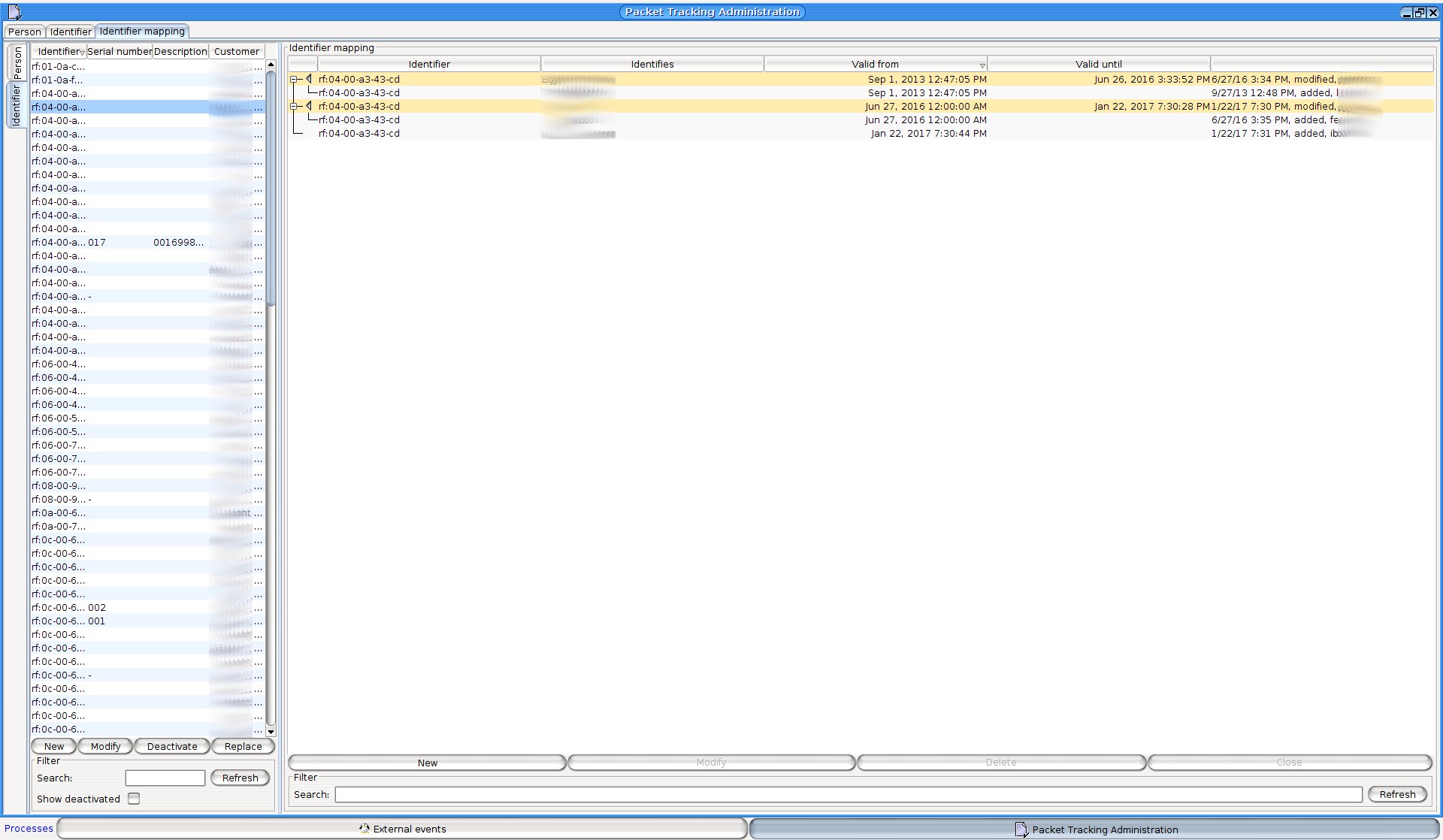 You can change any data of the ID with the “Chage” button (if you have permission to do so). You can revoke the validity of unused IDs with the “Deactivate” button. It the identifier is associated with an active driver, it will be immediately withdrawn from him (validity will be ended). Deactivated IDs can be re-activated at any time