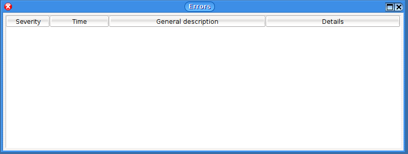 Eventual errors during the operation of the iTrack client can be found in this window. The error log helps system developers in troubleshooting.