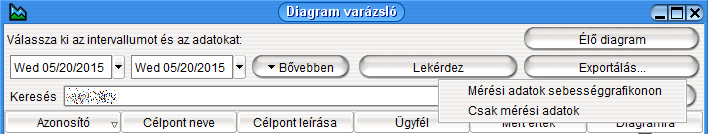 A grafikonon a mérési pontok fölé vihetjük az egeret, ahol leolvasható az idő és a mért adatok értéke.