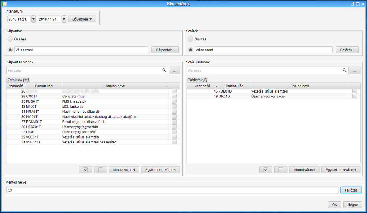 - Mentés helye (ahová az elkészített riportokat menteni szeretnénk)