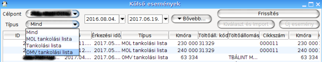A tankolási listákat Excel fáljból lehet a rendszerbe importálni. Ehhez válassza ki a típust, majd nyomja meg a Kiválaszt és Import gombot. Lehetőség van kézi bevitelre is.