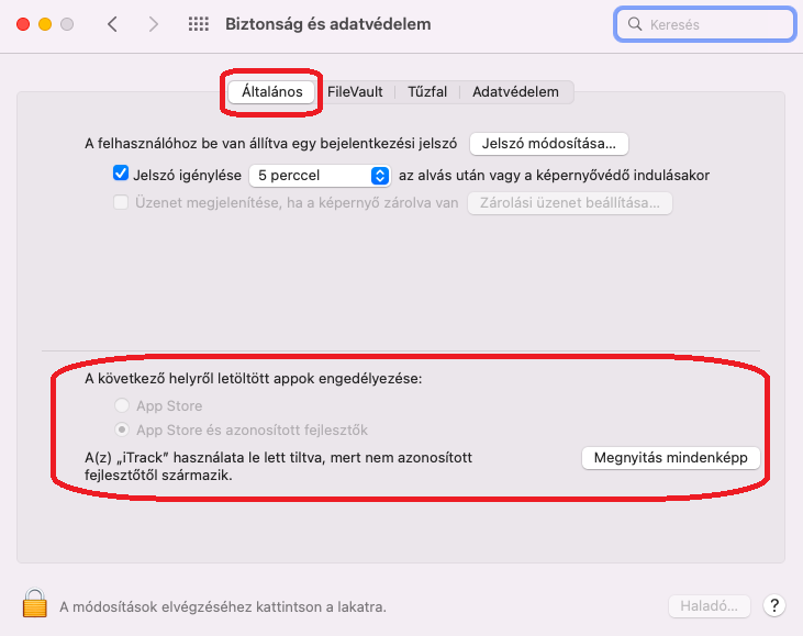> Rendszerbeállítások > Biztonság és adatvédelem > Általános fül > "Megnyitás mindenképp" lehetőséget.