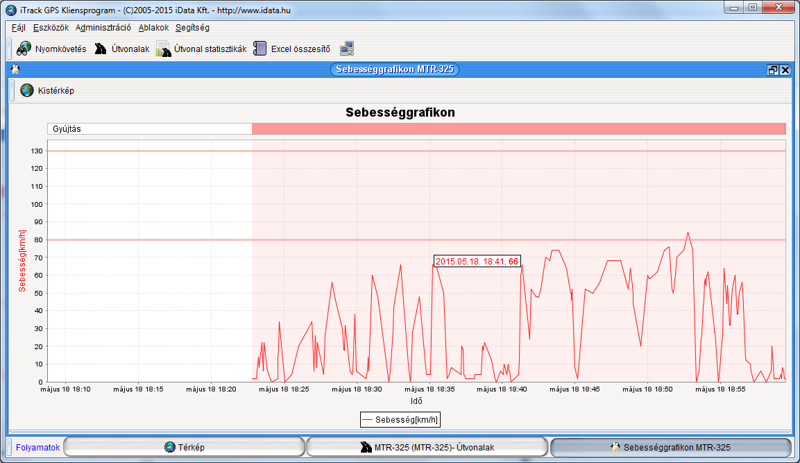 A jelölt útvonalakról grafikonokat jeleníthet meg (sebesség, hőmérséklet stb.). A grafikonok segítségével egy pillantással felmérheti, túllépett-e a célpont vagy annak egy mért értéke valamilyen korlátot, szabályt, igazolhatja a szállítási hőmérséklet helyességét, kontrollálhatja a gyorshajtásokat stb.