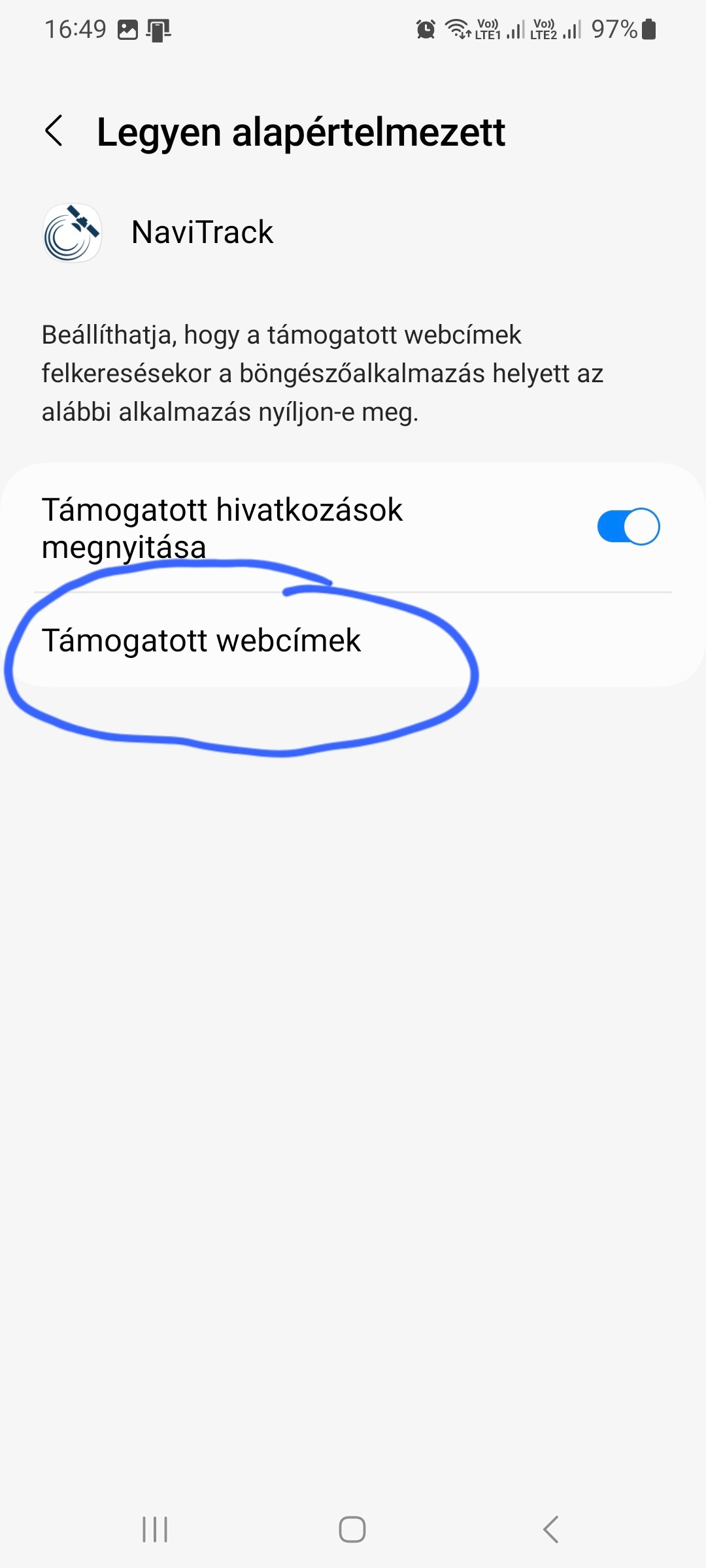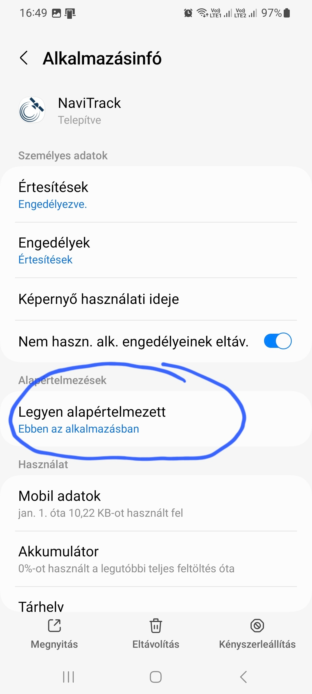 Nem fér hozzá egy adott menüponthoz a sofőr, mert nem adta meg a menüpont működéséhez szükséges engedélyt | A mobiltelefonon a Beállítások/Alkalmazások/NaviTrack/Engedélyek-ben kell engedélyezni a szükséges hozzáférést (pl.: Fotók és Videók) |