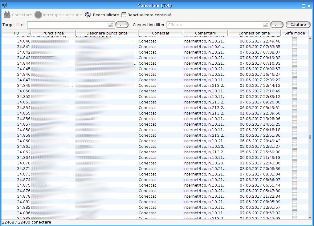 Puteţi verifica situaţia conexiunii cu ţinte. Puteţi deschide mai multe ferestre concomitent, expresia căutată apare în antet.