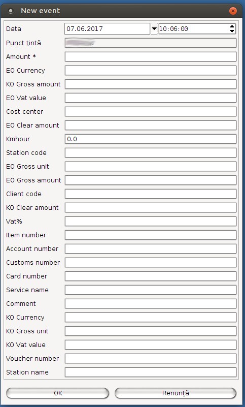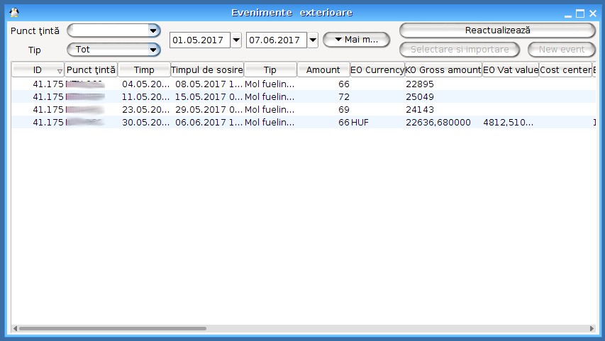 Listele de alimentare cu combustibil pot fi importate în sistem dintr-un fişier Excel. Pentru aceasta selectaţi tipul şi apăsaţi butoanele Selectare şi Import. Este posibilă şi introducerea manuală a datelor
