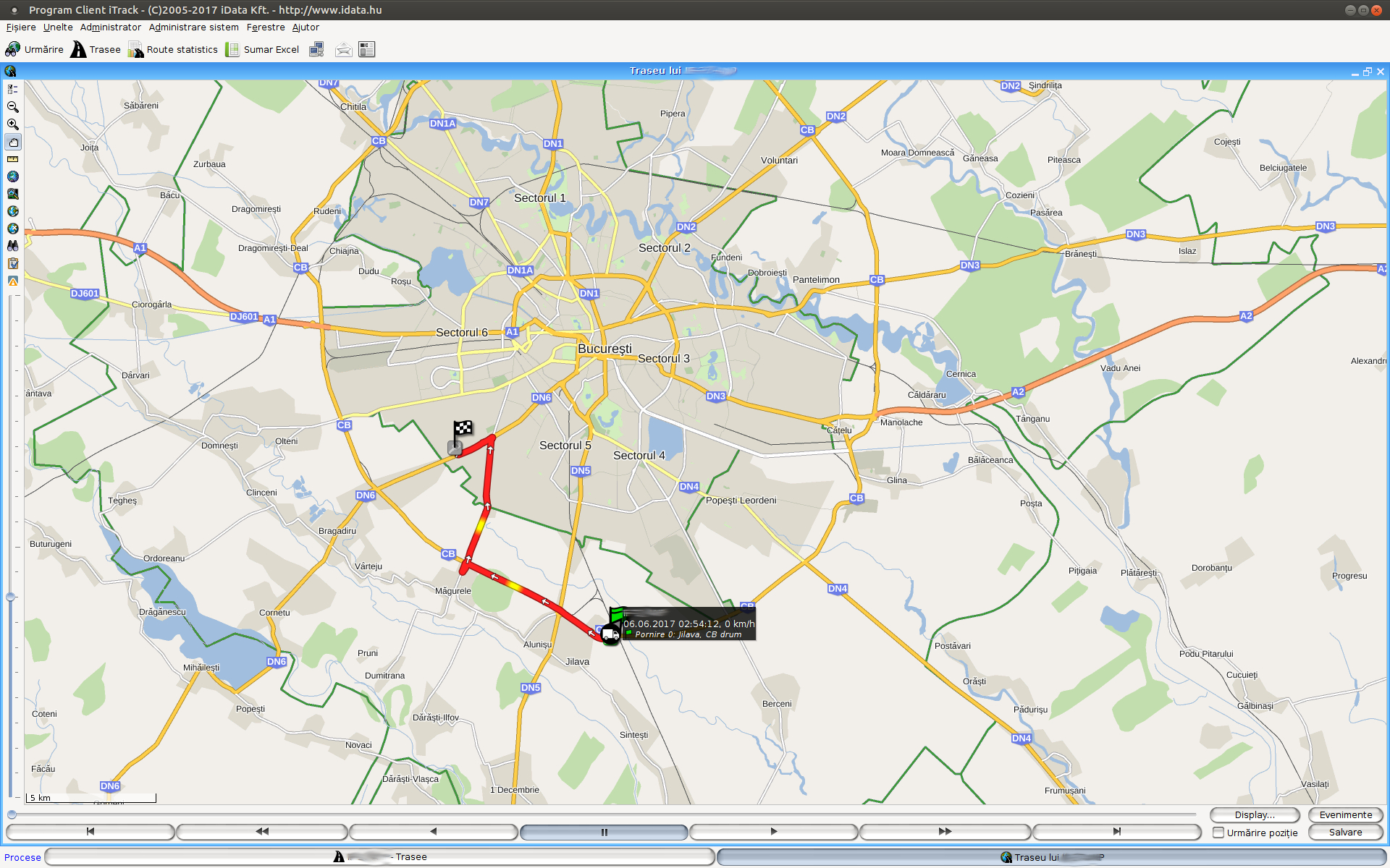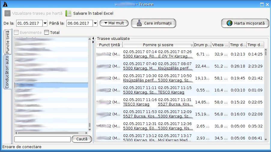 După selectarea unui anumit autovehicul şi interval de timp lista traseelor poate fi obţinută dând clic pe butonul „Interogare“.