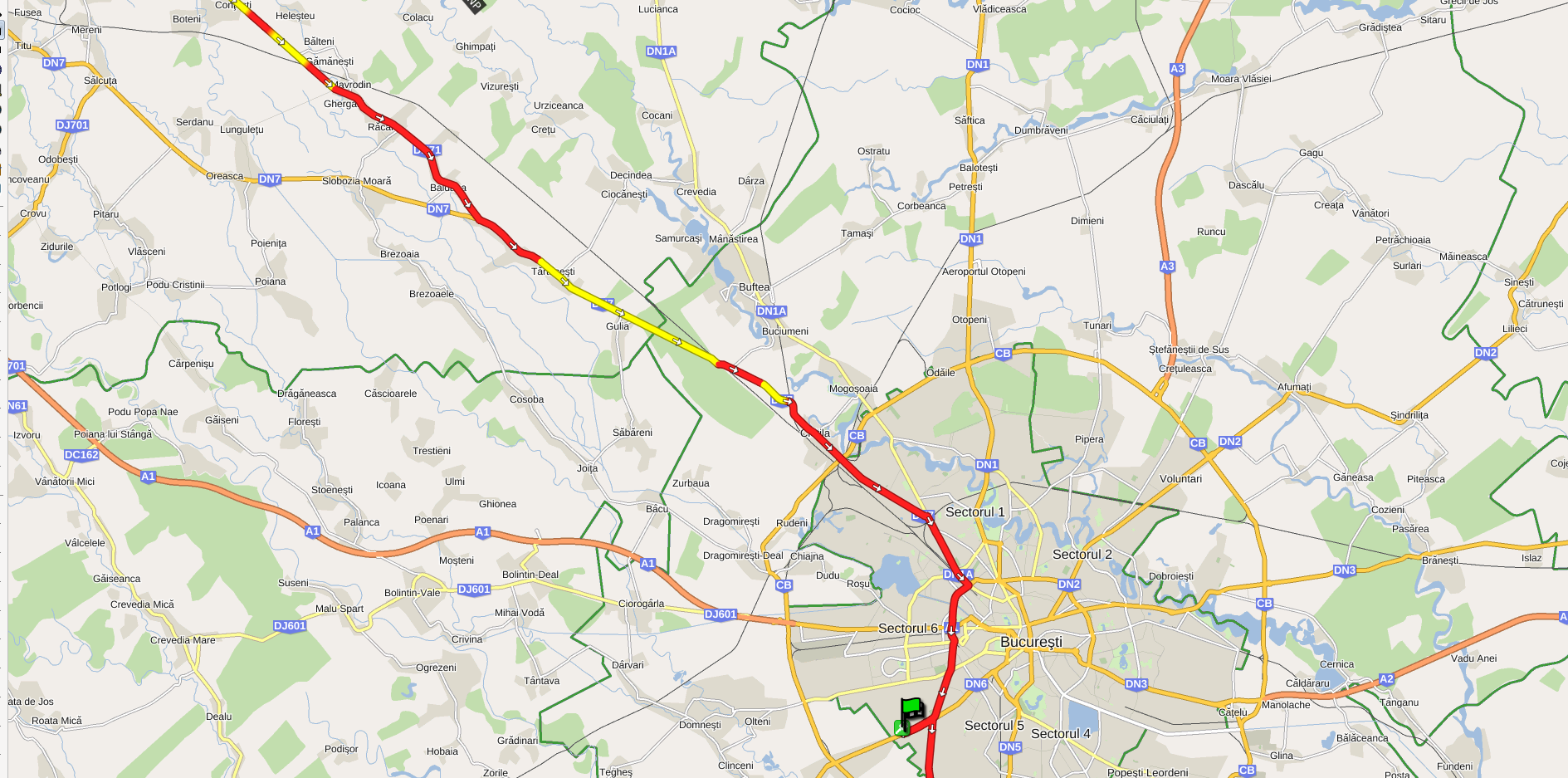 marcarea traseului parcurs cu linie gri în loc de linie roşie indică că porţiunea respectivă a fost omisă, ceea ce poate însemna că au avut loc probleme de recepţionare a datelor de la satelit, sau întreruperea aprovizionării cu curent a unităţii/autovehiculului, eventual traseu privat,