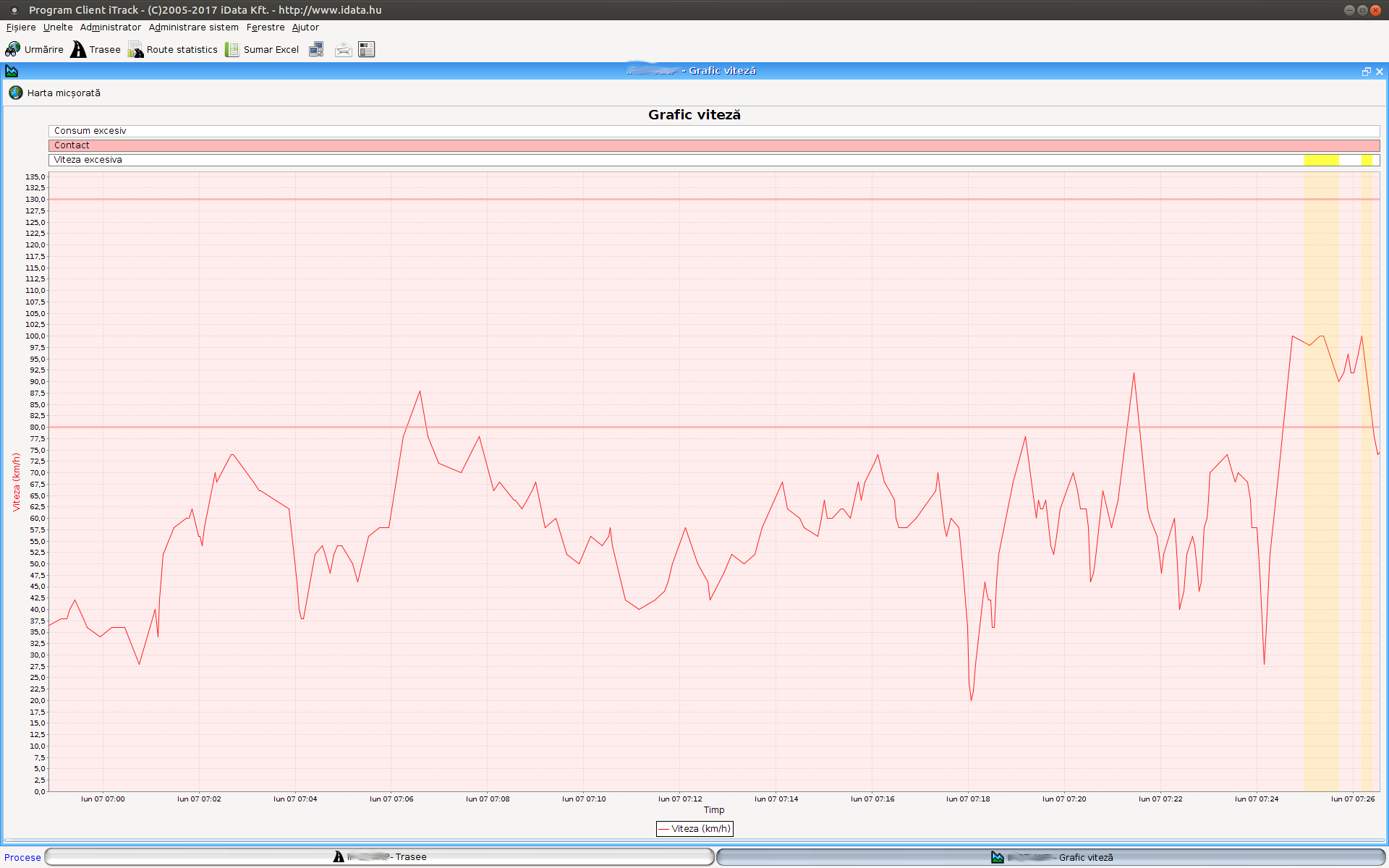 Dând clic pe butonul Grafic puteţi selecta tipul de grafic dintr-un meniu drop-down. Pentru a facilita administrarea datelor fiecare grafic conţine în mod implicit graficul de viteză, astfel va fi mai uşoară şi analiza celorlalte date afişate.