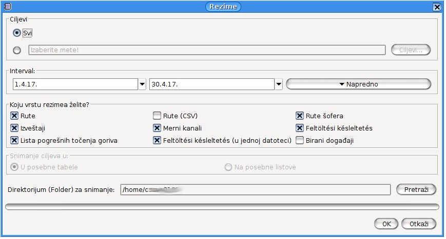 Pomoću Excel rezimea, sa zadavanjem vremenskog intervala, možete sačuvati istorijat vozila koji pripada korisničkom imenu u jedan Excel fajl.