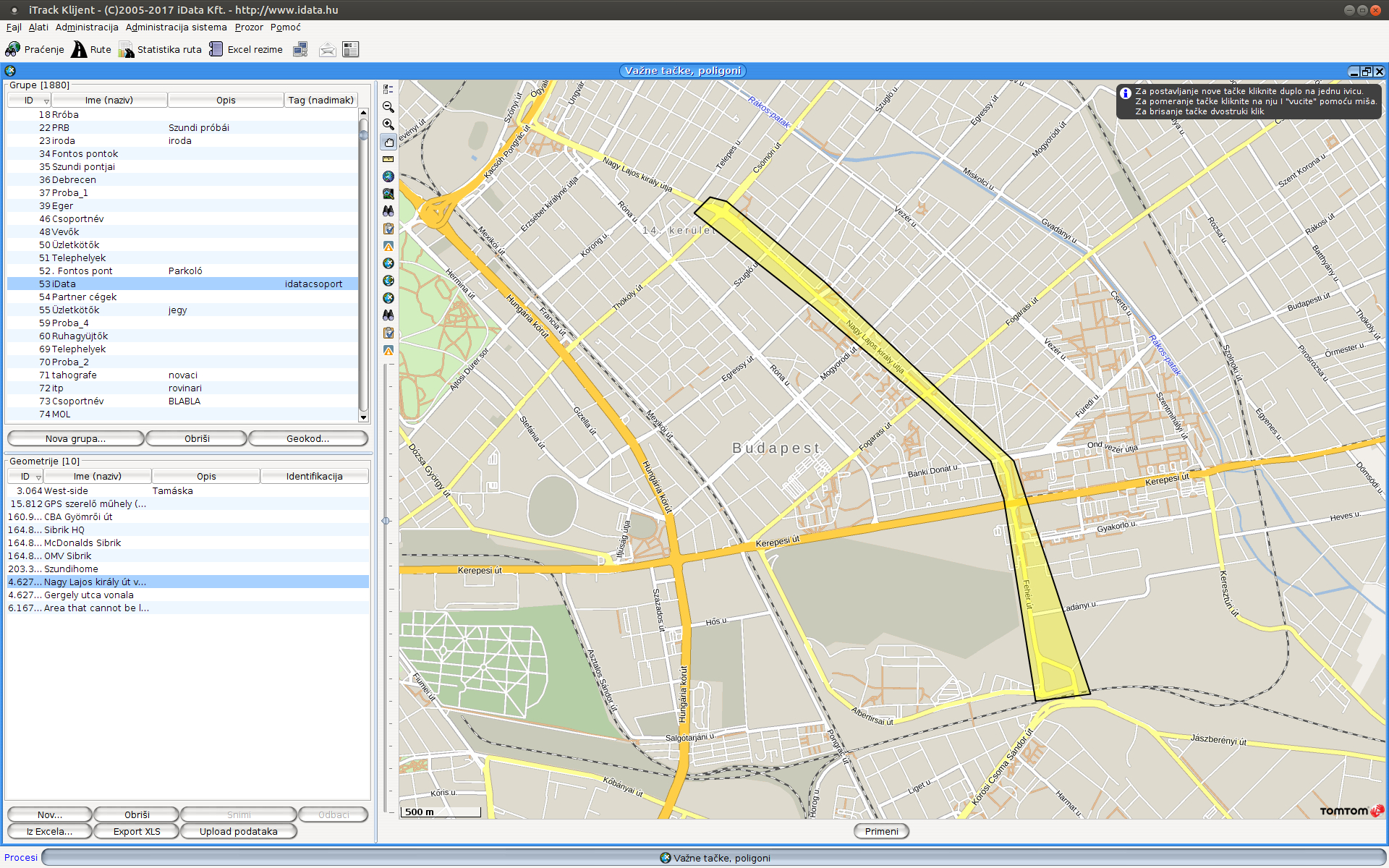 Kada smo odabrali odgovarajuću tačku, kliknemo na dugme za prihvatanje, i sistem će dodati obeleženoj grupi novu tačku, i odmah se prebaci na sledeći red u listi