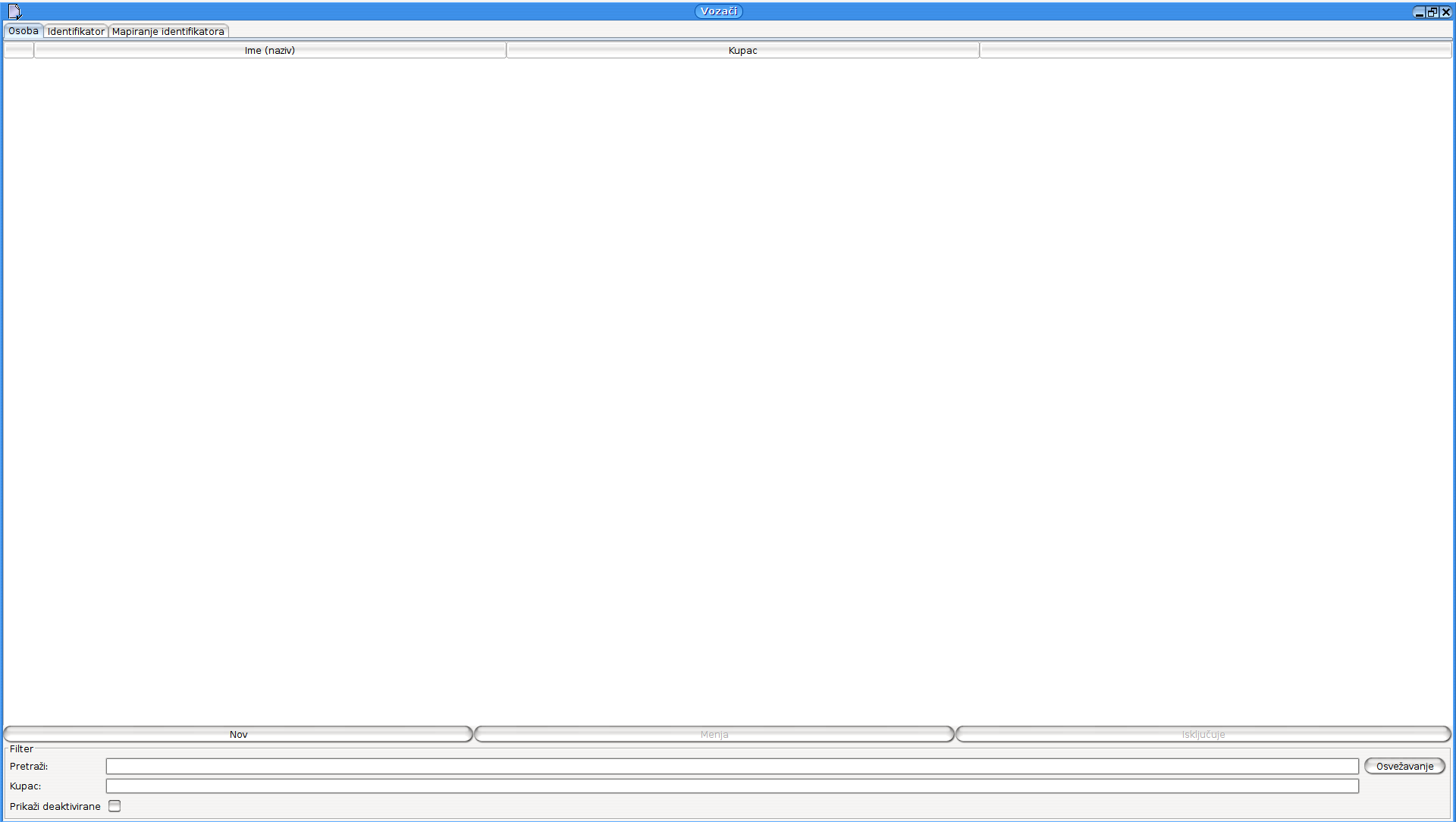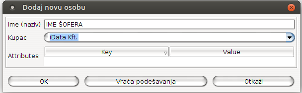 Sa dodavanjem identifikatora u sekciji „Osoba“ sa dugmetom „Novi“ takođe se može dodati novi vozač (isto kao i na „Osoba“ kvačici). I ostala dugmad funkcionišu na isti način. Sa dugmetom „Menja“ može se menjati sadašnji identifikator vozača.